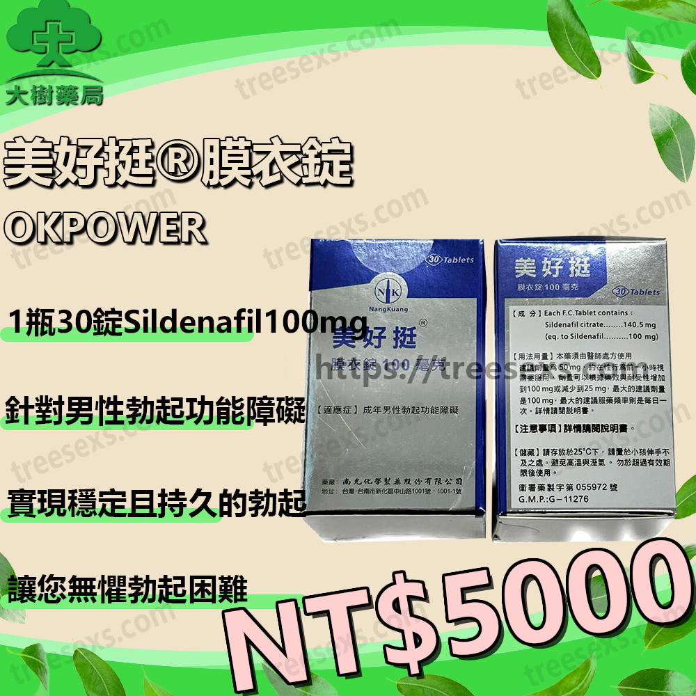 美好挺膜衣錠(瓶裝版)OKPOWER 100mg 為改善男性勃起功能障礙(ED)所設計,每片含 100mg Sildenafil,可協助增加血流至陰莖組織,提升勃起的穩定度與持續性。30 錠瓶裝方便依需求長期使用,適合希望維持穩定表現的男性,進一步增強自信與伴侶間的親密互動。其配方以起效迅速與使用便利著稱,適合作為面對勃起困難時的實用選擇。