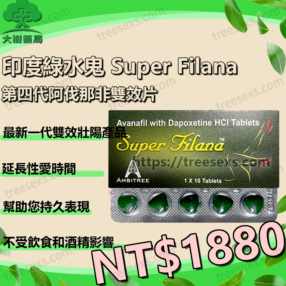 印度綠水鬼 Super Filana|第四代阿伐那非雙效錠/1盒10顆