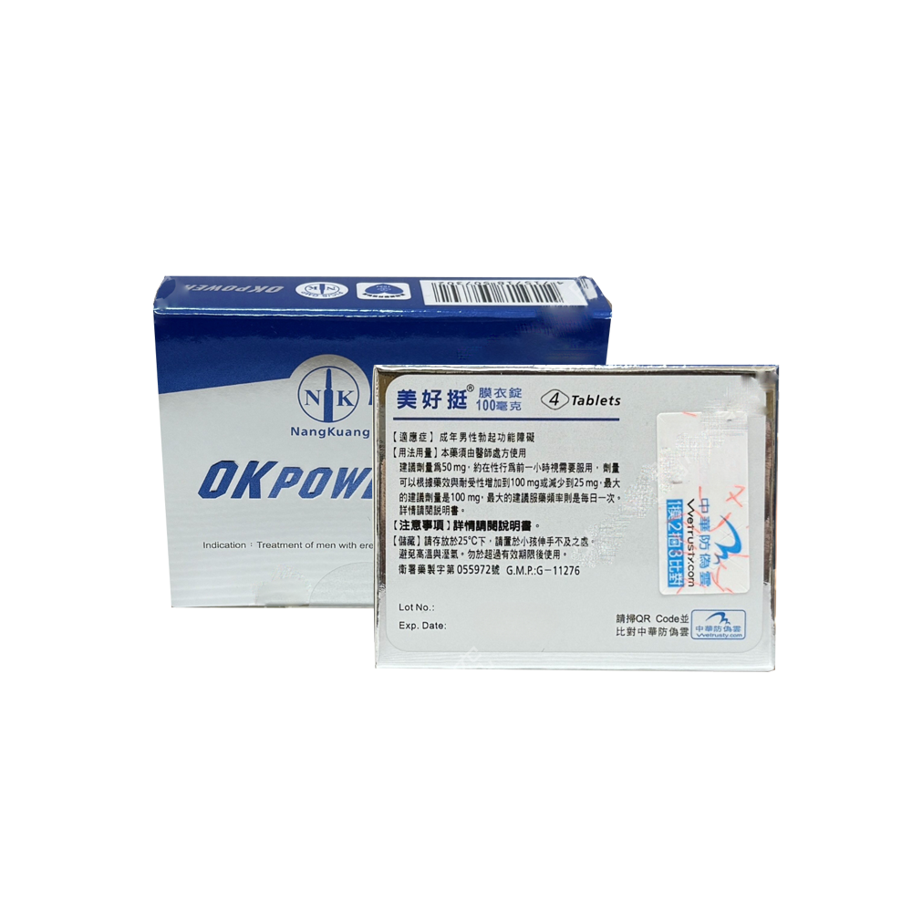 美好挺®膜衣錠 OKPOWER 100mg|強效助勃配方,重拾自信表現(1盒4錠)