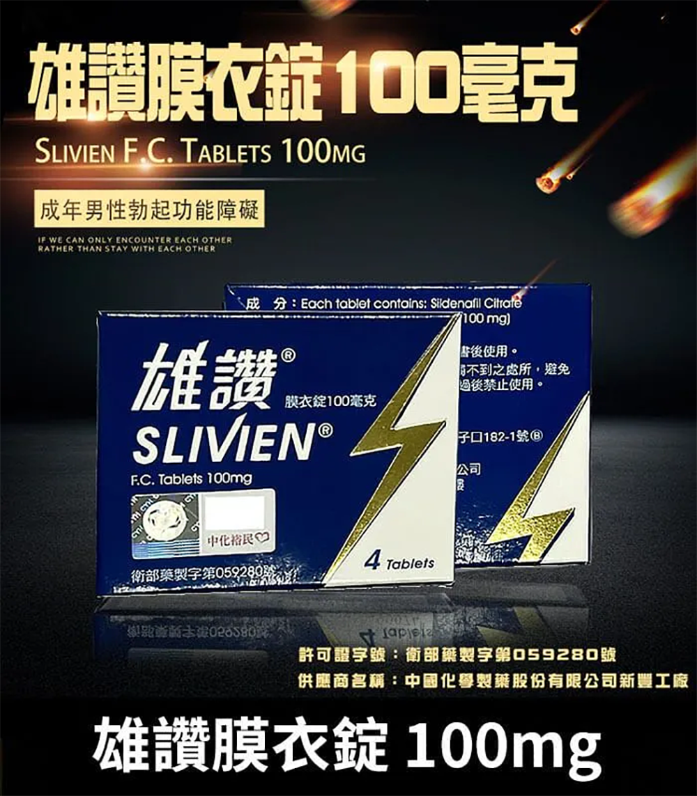雄讚膜衣錠由中化藥業研發生產,是一款針對男性勃起功能障礙(ED)設計的高效口服藥物。其主要成分為 Sildenafil(西地那非),與威而鋼相同,每盒4顆、每顆含量100mg。該藥能有效促進陰莖血液循環,協助男性在性刺激下達到並維持堅挺勃起,增強性愛表現與自信,適合需要即時助力的男性使用。