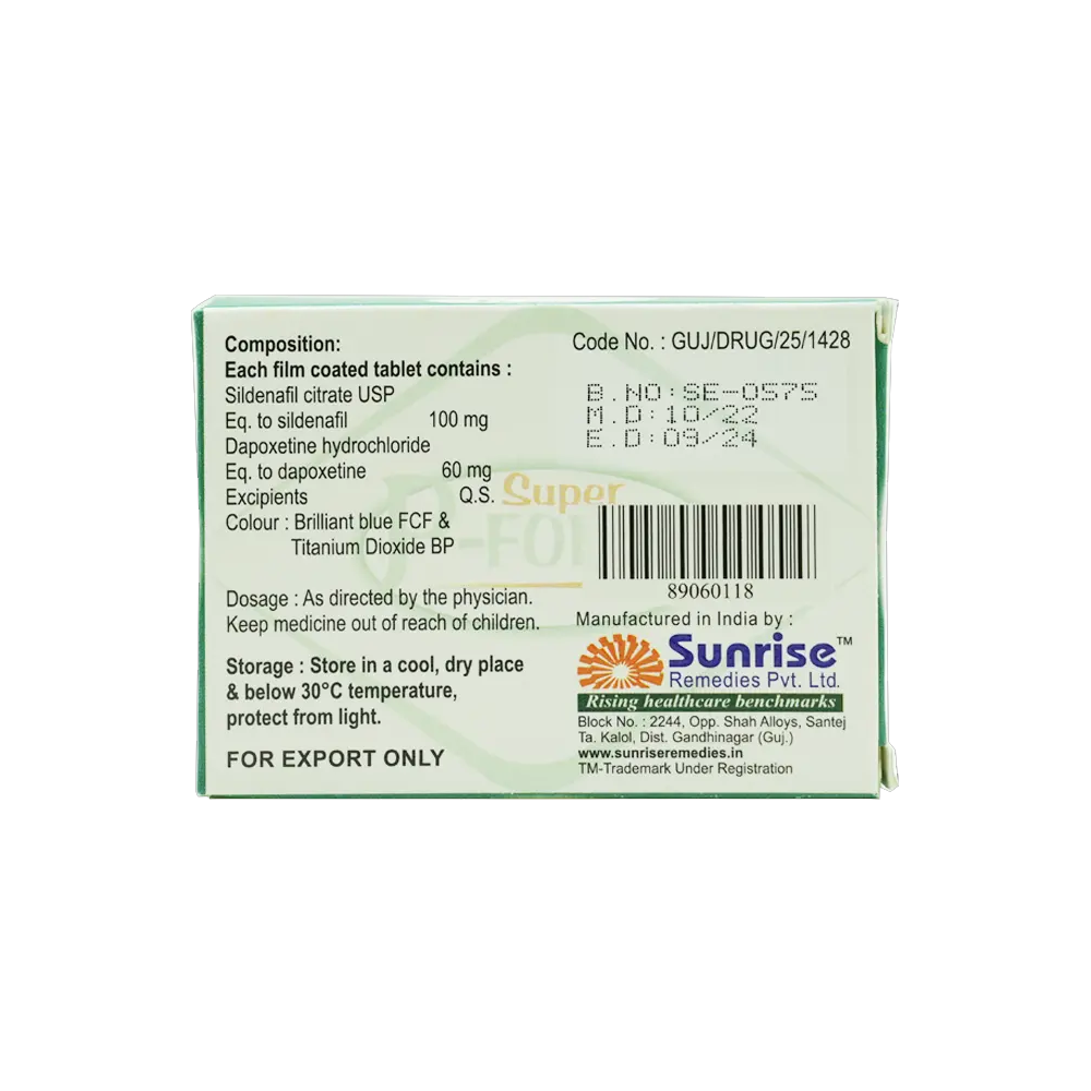 必利吉 Super P-Force 綠P 160mg 由印度知名製藥公司 Sunrise Remedies 生產,為一款兼具助勃與延時的雙效合一藥物。含有 100mg 西地那非,可促進陰莖血液循環,使勃起更堅挺;另含 60mg 達泊西汀,有效延遲射精,延長歡愉時間,幫助男性全面提升性生活品質。